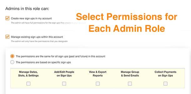 You can even drill down further by assigning permissions to specific sign ups and determining if a subadmin can edit a sign up, send messages, view data and more.